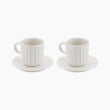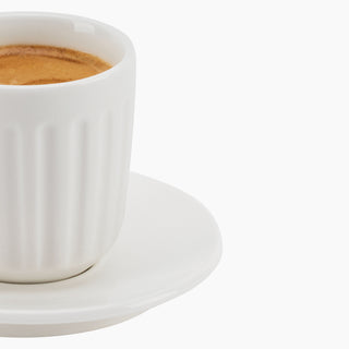 A contemporary collection of new bone china cups and saucers, designed for coffee with friends, a morning pick-me-up or an evening of entertaining.